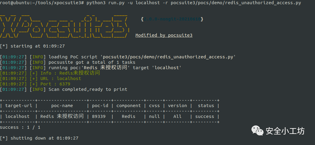 python3 run.py -u localhost -r pocsuite3/pocs/demo/redis_unauthorized_access.py