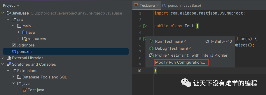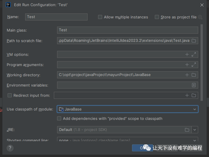 总结,一开始遇到这个问题的时候,非常依赖搜索引擎、大模型、人工智能,但是一直没有结果,后来就思考怎么给Scratch文件添加第三方库?终于让我找到了这种方式,这个意思就是将我们指定的模块添加到classpath中,我们指定的模块的pom文件中有此依赖,那么当前被运行的不就有了吗?到此,问题迎刃而解。