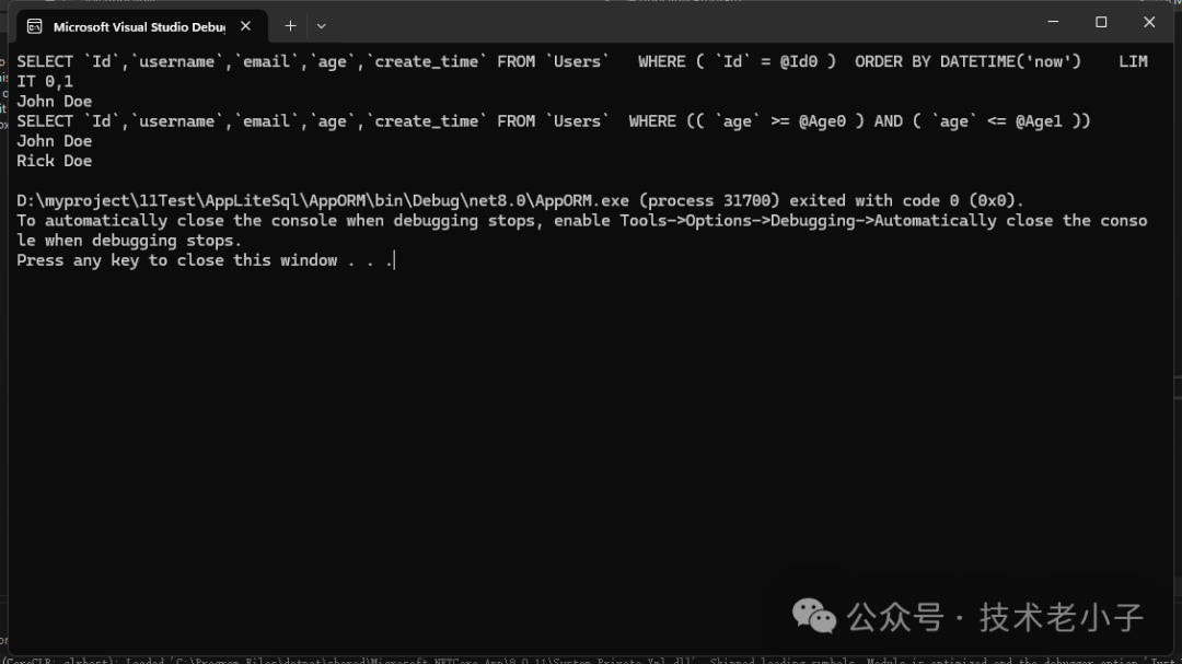 Console.WriteLine(sql); // 打印SQL语句