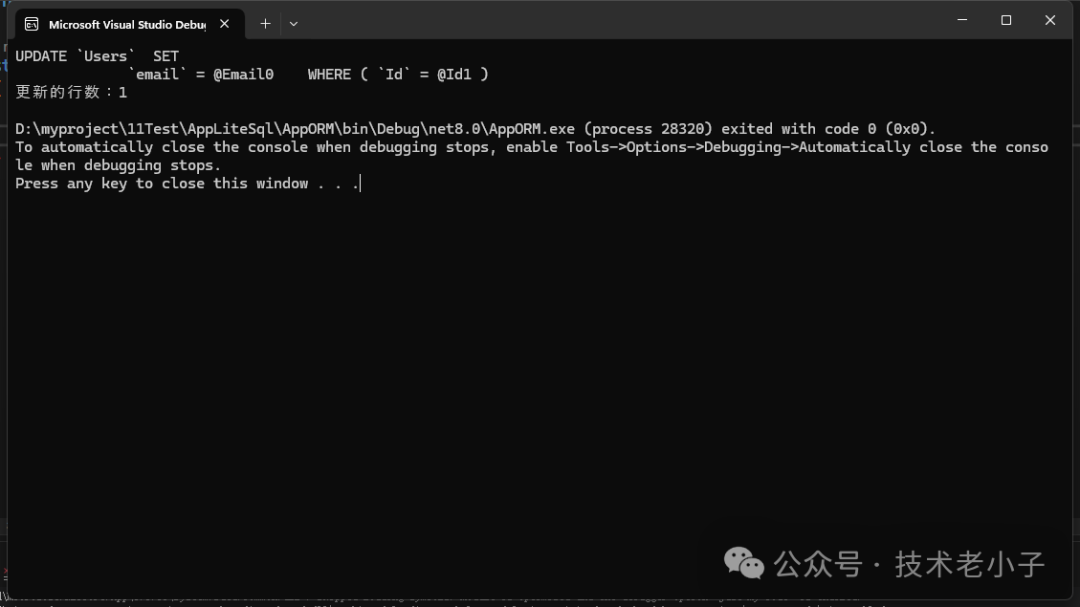 Console.WriteLine($"更新的行数:{affectedRows}");