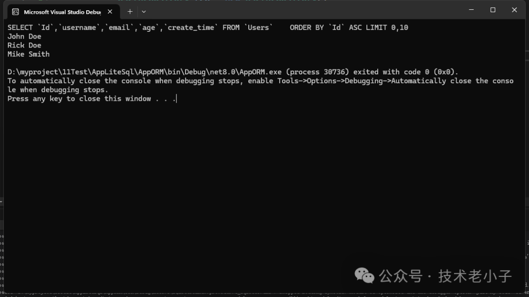 rep.AddUser(new User { Username = "John Doe", Email = "john@example.com", Age = 30, CreateTime = DateTime.Now });