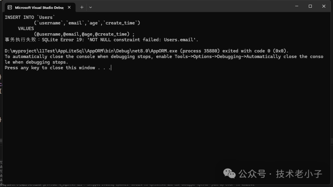 Console.WriteLine($"事务执行失败:{ex.Message}");