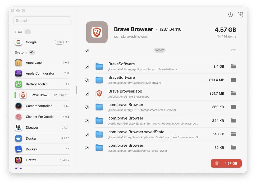 Pearcleaner 能快速扫描并清除已卸载应用的残留文件,包括缓存、日志、首选项等。其“剩余文件搜索”功能可追溯历史卸载记录,确保系统无冗余文件。