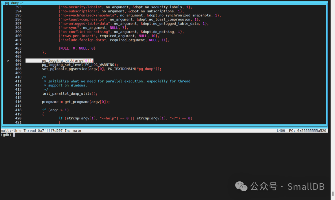 postgres@BJ-015908:~$ gdb --args usr/local/pgsqldebug/bin/pg_dump --format p -f dd.sql