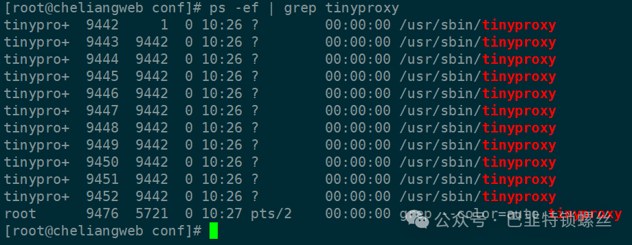 ps -ef | grep tinyproxy