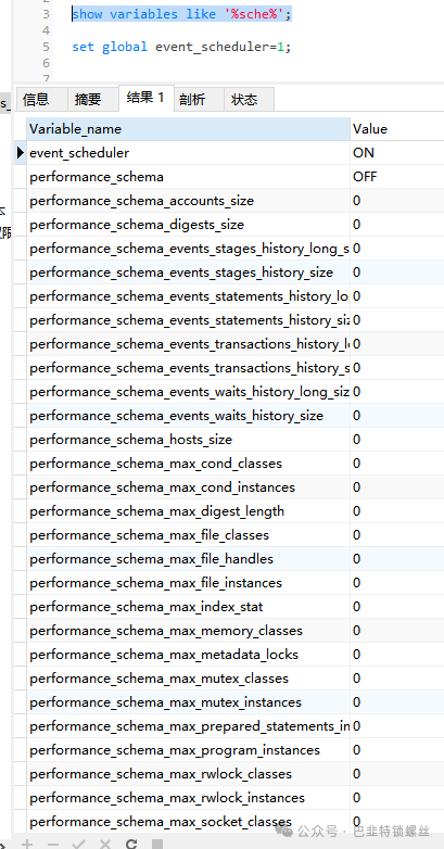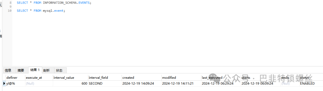 SELECT * FROM INFORMATION_SCHEMA.EVENTS; ##查看事件详细信息