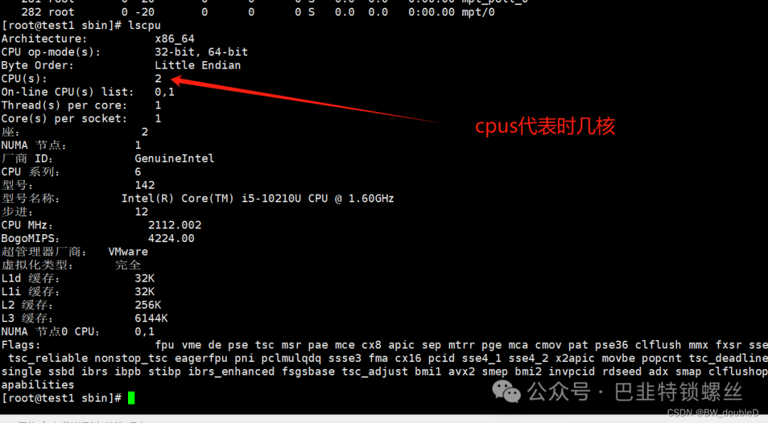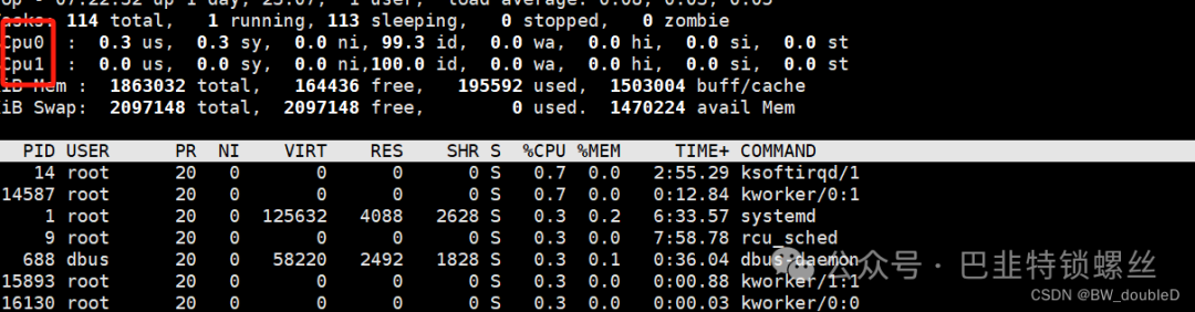top命令后,按1:看cpu是几核的。(下图说明这个cpu是2核的。)