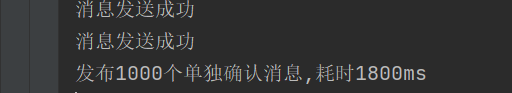 System.out.println("发布" + 1000 + "个单独确认消息,耗时" + (end - begin) + "ms");
