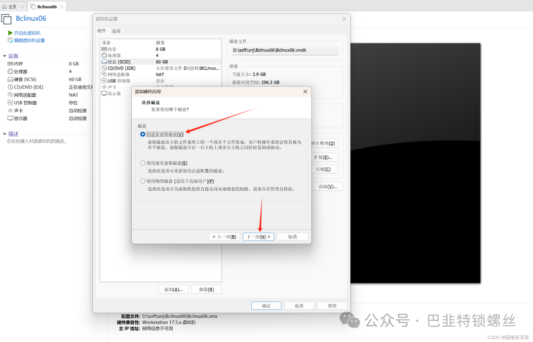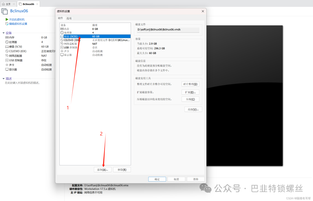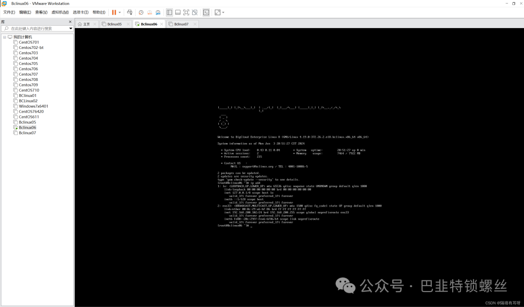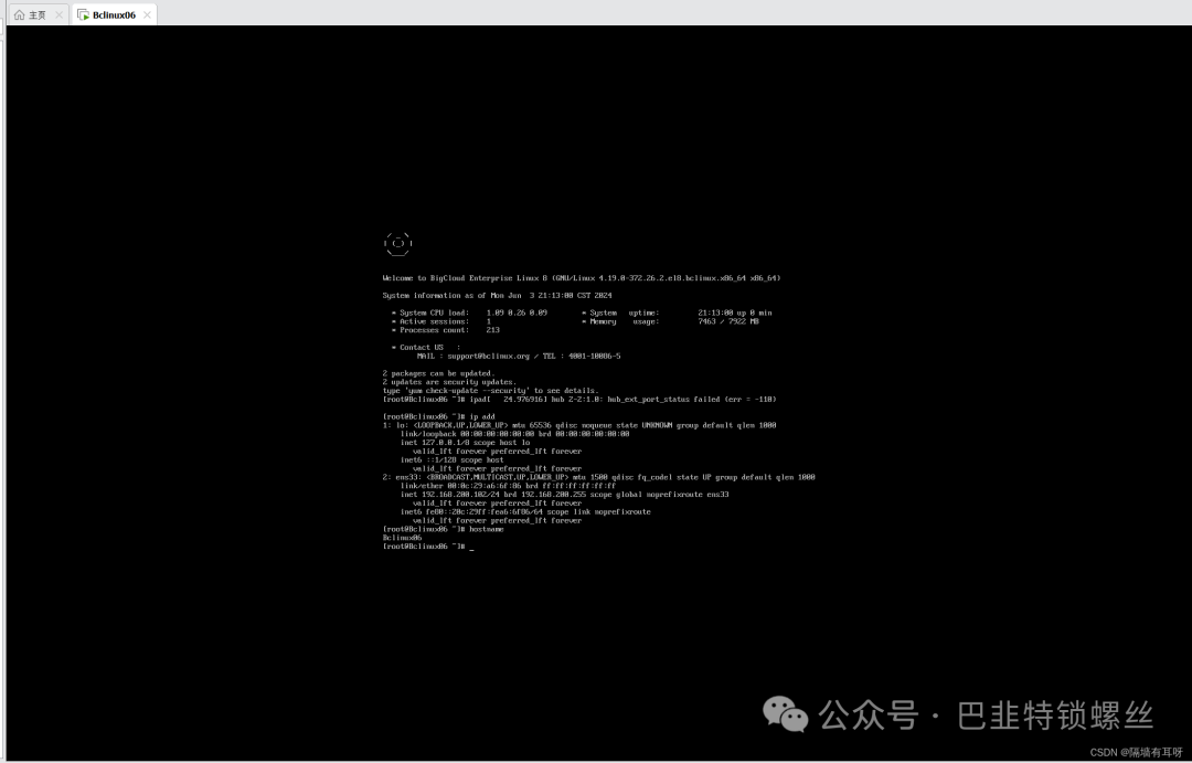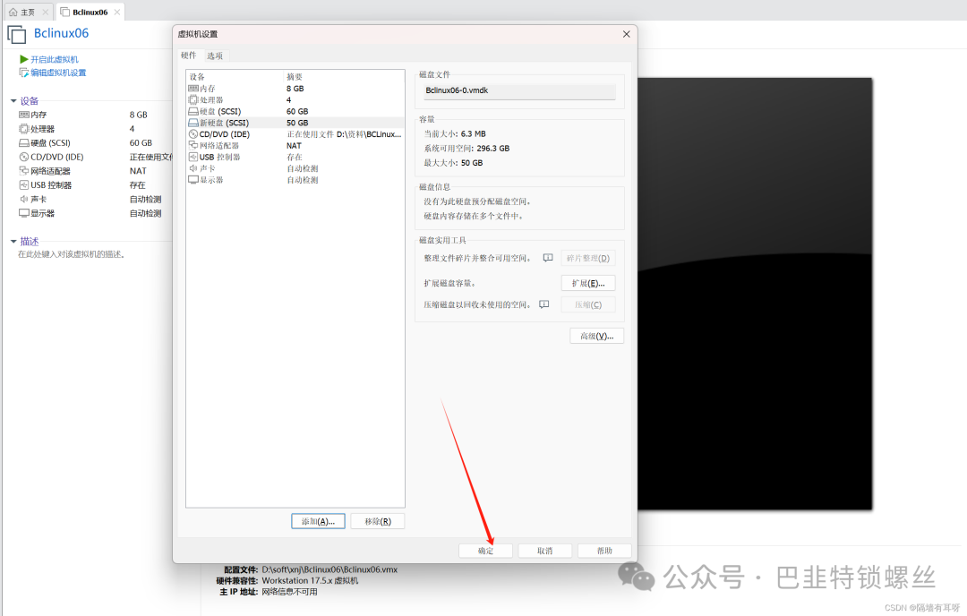 [root@Bclinux06 ~]# fdisk -lDisk /dev/sda:60 GiB,64424509440 字节,125829120 个扇区单元:扇区 / 1 * 512 = 512 字节扇区大小(逻辑/物理):512 字节 512 字节I/O 大小(最小/最佳):512 字节 512 字节磁盘标签类型:dos磁盘标识符:0x68ee8409设备 启动 起点 末尾 扇区 大小 Id 类型/dev/sda1 * 2048 2099199 2097152 1G 83 Linux/dev/sda2 2099200 125829119 123729920 59G 8e Linux LVMDisk /dev/sdb:50 GiB,53687091200 字节,104857600 个扇区单元:扇区 / 1 * 512 = 512 字节扇区大小(逻辑/物理):512 字节 / 512 字节I/O 大小(最小/最佳):512 字节 / 512 字节Disk /dev/mapper/bel-root:35.6 GiB,38235275264 字节,74678272 个扇区单元:扇区 / 1 * 512 = 512 字节扇区大小(逻辑/物理):512 字节 / 512 字节I/O 大小(最小/最佳):512 字节 / 512 字节Disk /dev/mapper/bel-swap:6 GiB,6442450944 字节,12582912 个扇区单元:扇区 / 1 * 512 = 512 字节扇区大小(逻辑/物理):512 字节 / 512 字节I/O 大小(最小/最佳):512 字节 / 512 字节Disk /dev/mapper/bel-home:17.4 GiB,18668847104 字节,36462592 个扇区单元:扇区 / 1 * 512 = 512 字节扇区大小(逻辑/物理):512 字节 / 512 字节I/O 大小(最小/最佳):512 字节 / 512 字节[root@Bclinux06 ~]#