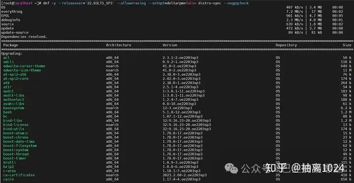 5.升级到openEuler-22.03-LTS-SP4,这一步一般会报错,如果没有报错会直接进行升级,升级完请进行下一步操作