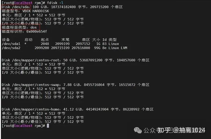 MBR分区(传统的BIOS、dos、msdos)(注意/dev/sda需根据实际情况自行选择磁盘路径,具体参考上图)