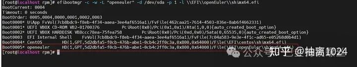 efibootmgr -c -w -L "openeuler" -d /dev/sda -p 1 -l \\EFI\\openEuler\\shimx64.efi