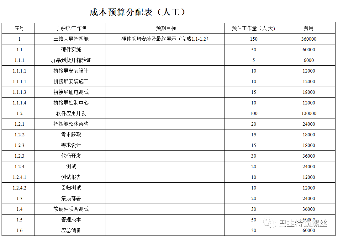 估算科目成本:人工费用,结合进度、采用三点估算。