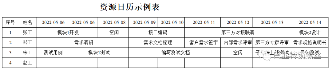各阶段资源:前期(业务需求、设计)、软件安装、硬件实施、现场测试、驻场办公,收尾移交、运维