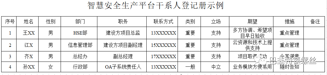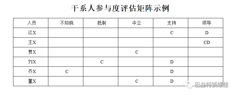 客户方业务人员;客户方领导;我方内部职员;我方领导。