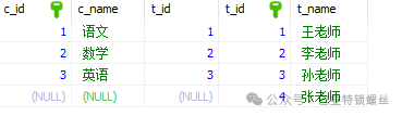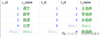 select * from course c left outer join teacher t on c.t_id = t.t_id