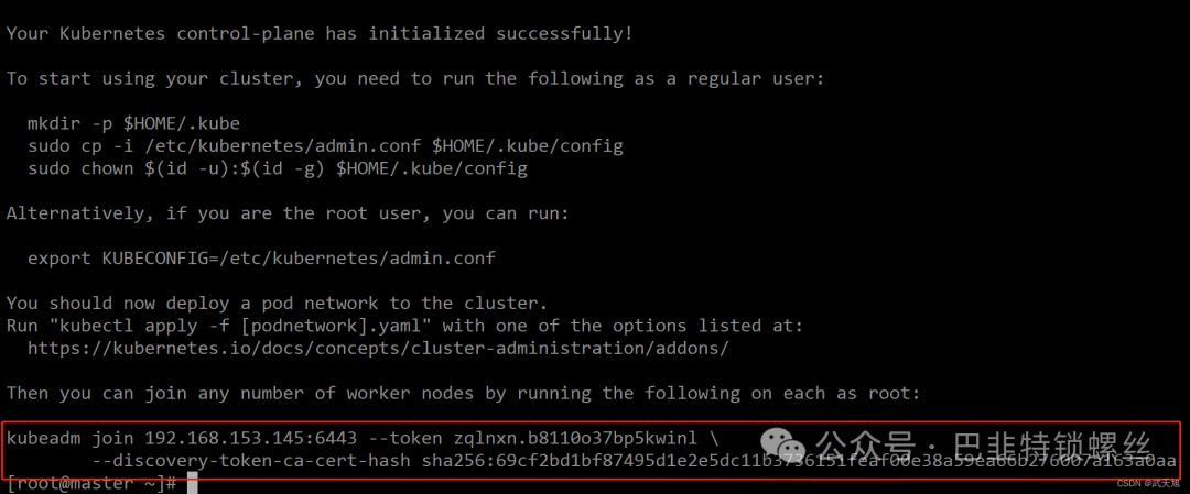 kubeadm join 192.168.153.145:6443 --token zqlnxn.b8110o37bp5kwinl --discovery-token-ca-cert-hash sha256:69cf2bd1bf87495d1e2e5dc11b3736151feaf00e38a59ea66b276007a163a0aa