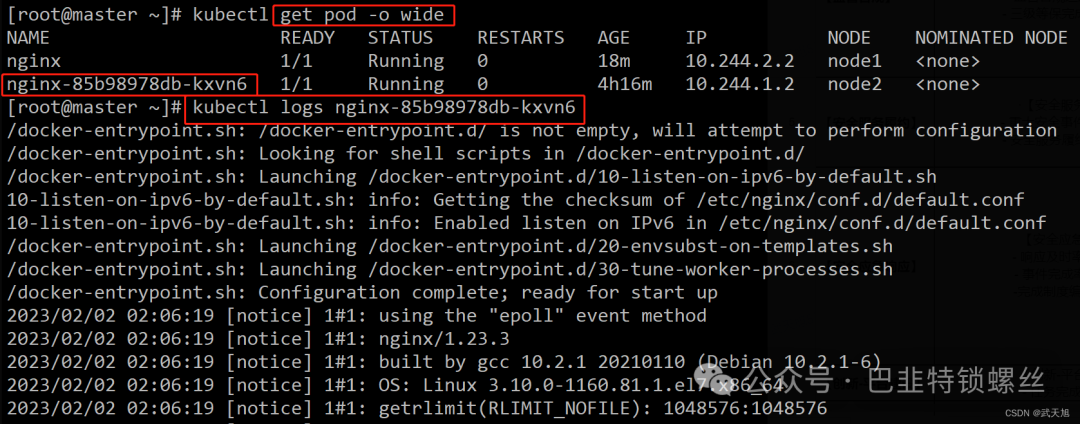 kubectl logs nginx-85b98978db-kxvn6