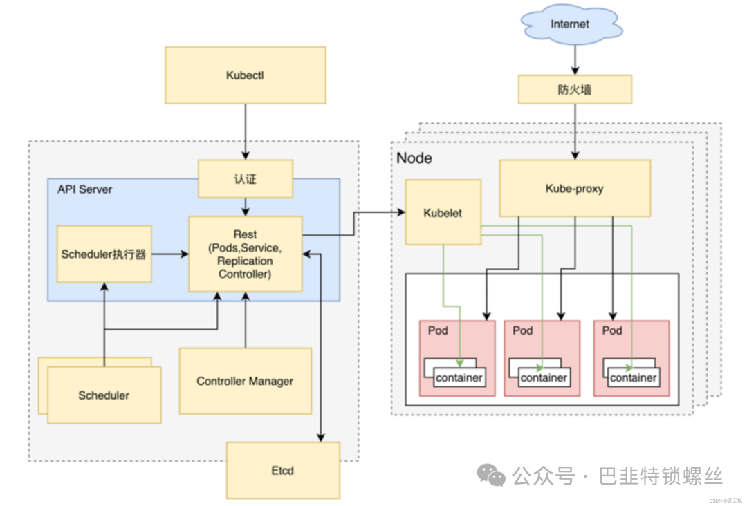 API Server组件在如上介绍的Pod工作流中体现的功能可总结为以下几点: