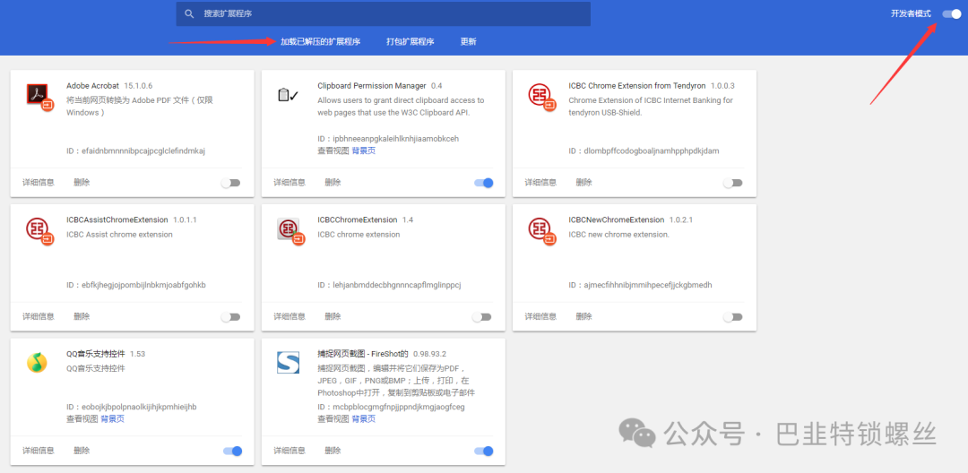 第一步:浏览器URL打开:chrome://extensions/,选择启用开发者模式
