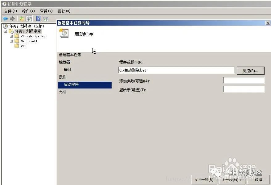 forfiles /p "D:\backup" s m *.* /d -7 /c "cmd /c del @path"