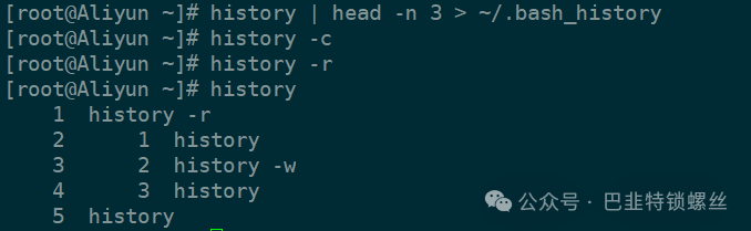 history | head -n 3 > ~/.bash_history #保存最上面3条记录history -c #清除记录history -r #重新加载history记录