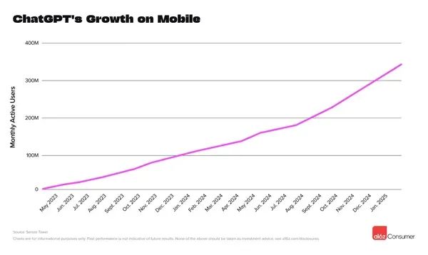 2023年11月的1亿周活跃用户,而2024年8月的2亿,再到2025年2月中旬的4亿。