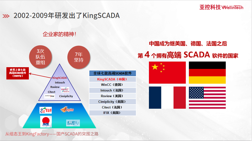 林伟先生以汽车品牌分低端和高端类比,SCADA软件也有高低之分,为了满足大规模、高可靠、复杂信创环境要求的高端SCADA需求,亚控科技历经3次队伍重组、7年技术攻坚,终于在2009年推出世界第七款高端SCADA软件。这不仅使中国成为继美、德、法之后第四个掌握该技术的国家,还体现了在如神东煤炭集团138.4万点的监控案例、24h×365天长期稳定运行的高可靠性、以及应对从单一的 Wintel 到一众信创组合的测试环境复杂性,完成了在多个世界级工程中的实践检验: