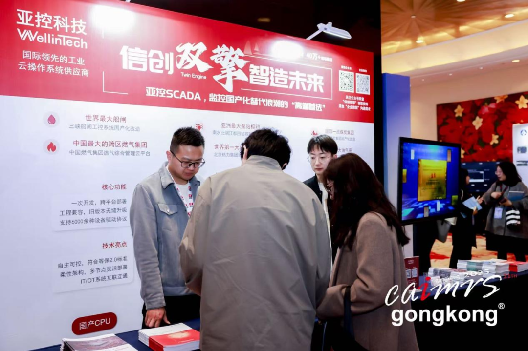 在林伟先生演讲期间,亚控展位便迎来了如潮的参观者。现场观众纷纷驻足交流,本次亚控科技展示了“信创双擎”核心理念,直击智能制造核心痛点——安全可控与高效协同,为中国制造业打造“数字中国”的低层基础。