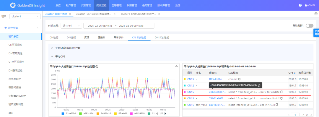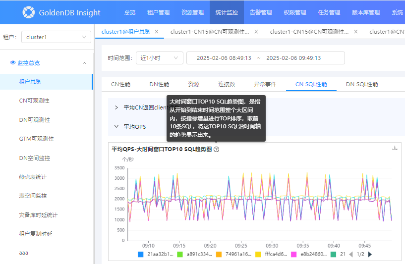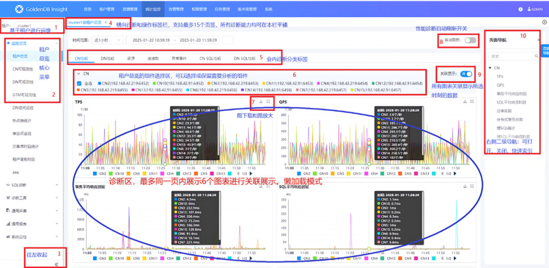 在技术革新的浪潮中,GoldenDB数据库坚守初心,以“好用、易用”为技术突破方向,从用户体验的细腻洞察出发,在Insight运维平台精心打造了基于租户的灵活运维模式,以适配多样化的业务需求;呈现出丰富多元的可视化交互界面,让数据操作直观便捷;更配备强大精准的诊断功能,迅速定位并解决潜在问题。