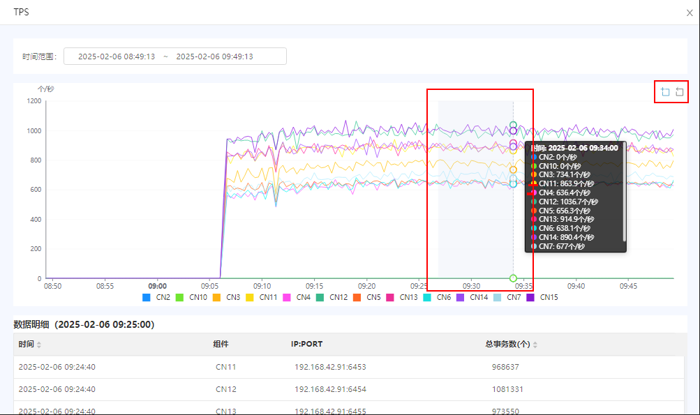 图1中间红框6为组件选择区,对于同类型的组件,Insight运维平台默认列出所有组件节点,用户可自由选择需保留的节点来展示。多个节点的数据会在同一坐标轴展示,体现节点间比较的效果。