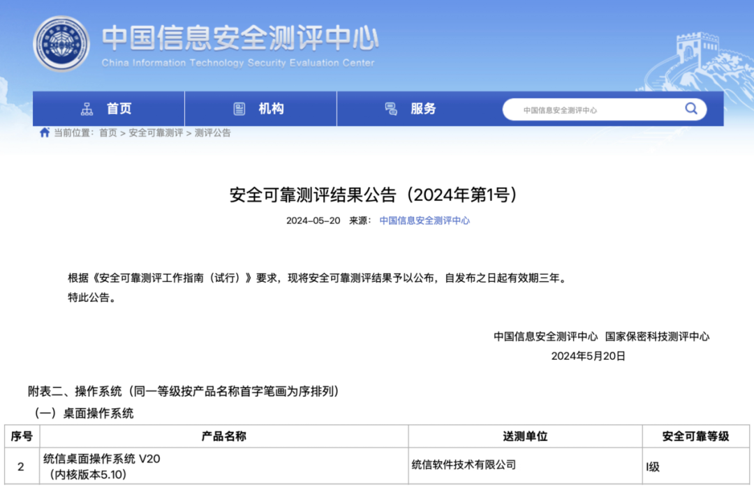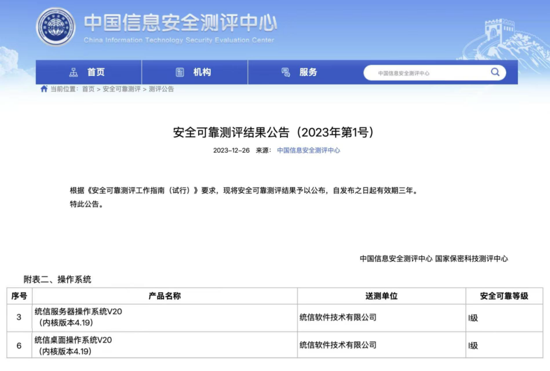 2023 年 7 月 28 日,《安全可靠测评工作指南(试行)》发布时,Linux 4.19 版本是以统信 UOS 为代表的国产操作系统主流内核,统信桌面操作系统 V20(内核版本 4.19)和统信服务器操作系统 V20(内核版本 4.19)双双上榜,标志着统信 UOS 的产品能力和自主研发实力得到国家权威机构的认可。