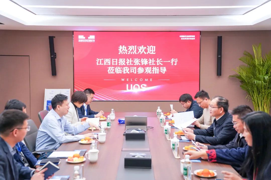 江西报业传媒集团副总经理刘勇、江报体育公司副总经理邱辉强、江报珉轩信息技术公司总经理李淑琴、江西日报社时政中心记者刘斐陪同参访;统信软件公共事务部总经理郑传荣、渠道管理部总经理李世波、分管高级总监王明玥、江西事业部总监刘汝意等陪同并汇报公司相关工作情况。