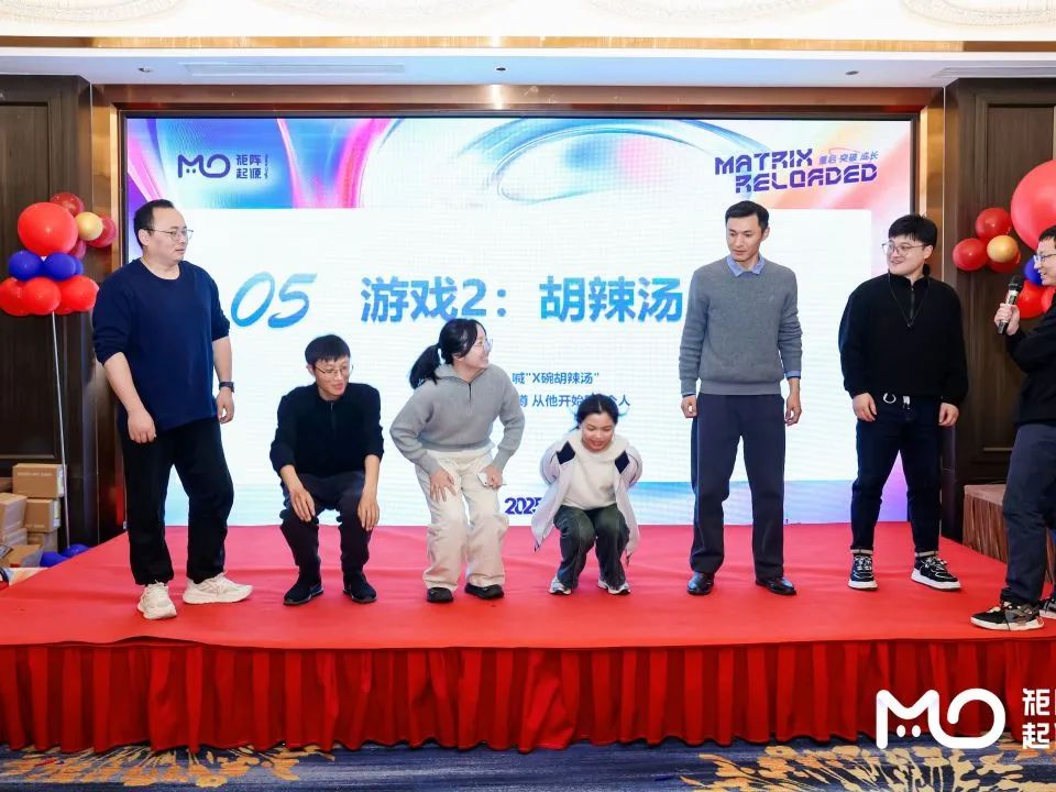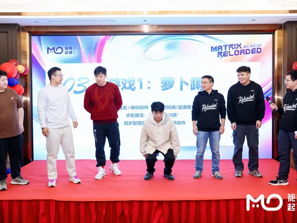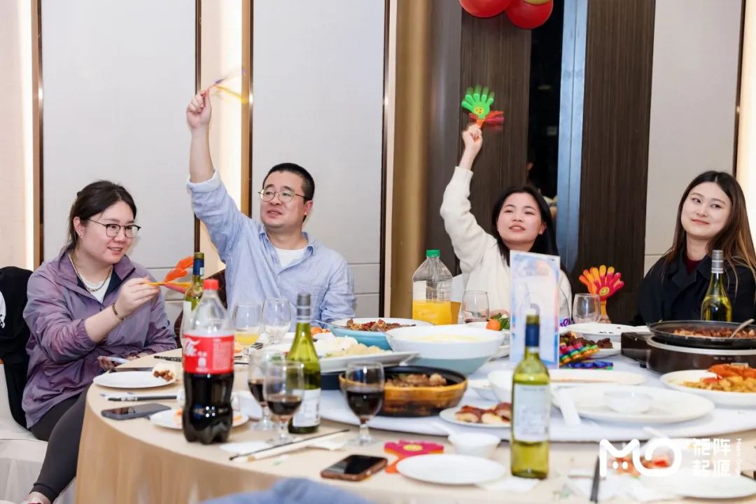 夜幕降临,晚宴正式开始。美食与美酒交织,欢声与笑语回荡。这是一场属于全体MOer的盛宴,我们在这里放松身心,共度美好时光。紧接着,第一个年会游戏“萝卜蹲”火热上演,大家积极参与、欢乐比拼,展现了MOer的青春活力