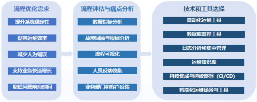运维体系建设包括组织建设、能力培养以及运维流程优化: