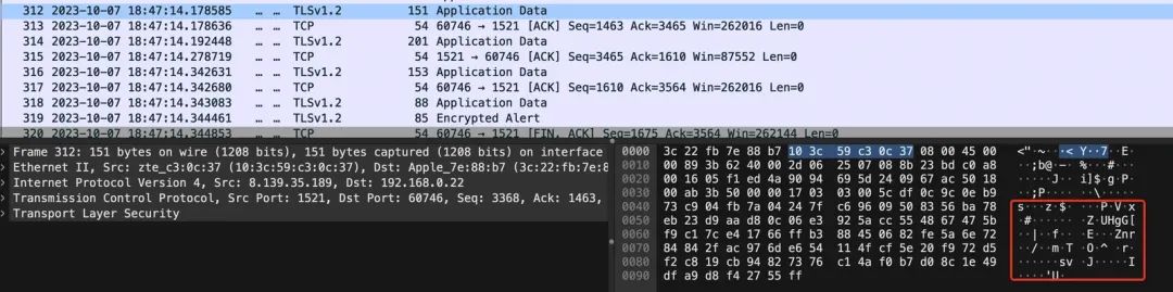 而如果在控制台打开了SSL密功能,数据的传输会升级为TLSv1.2协议,该协议是一种加密协议,会对传输的数据进行加密,这样中间节点就无法通过解包获取到查询的内容。