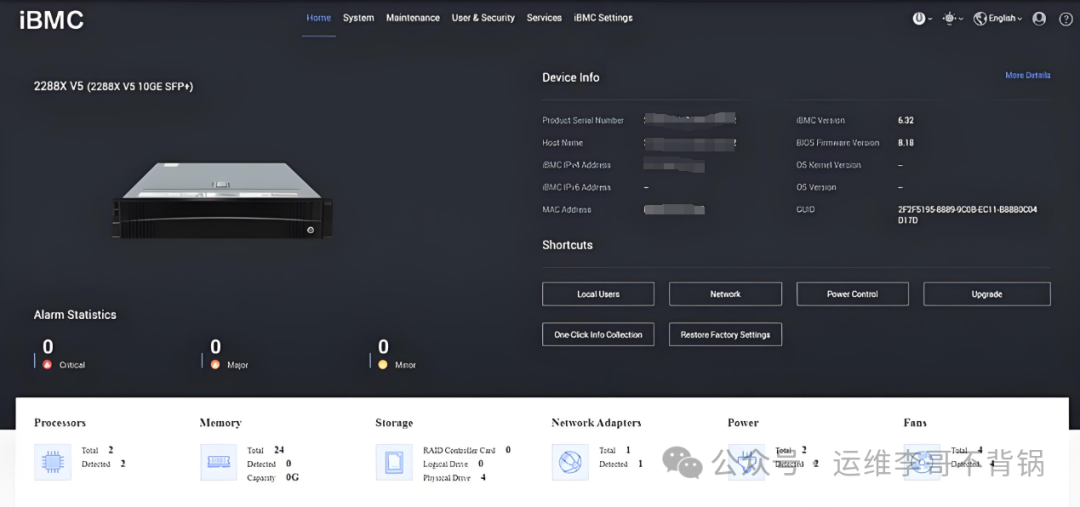 Huawei iBMC(华为):华为服务器的带外管理方案,支持远程控制、固件更新和故障诊断