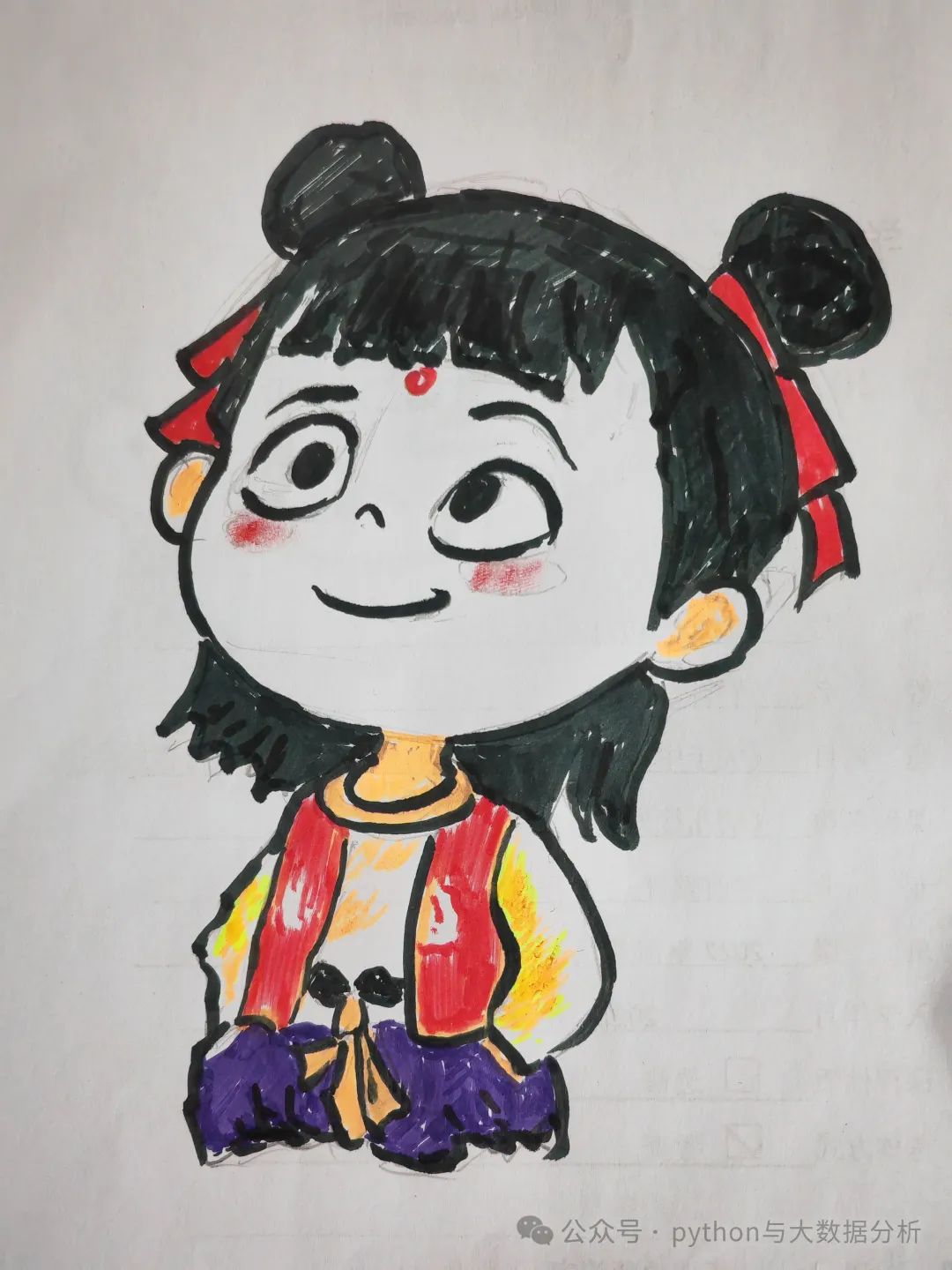 作为一个哪吒的狂热粉丝,我也拿起画笔,试图用自己的方式描绘出心中的哪吒。在绘画的过程中,我不断回忆电影中的精彩画面,努力捕捉哪吒的每一个神态和动作。从哪吒那标志性的黑眼圈,到他充满力量感的身形,再到他手中的混天绫和火尖枪,每一个细节我都反复琢磨。