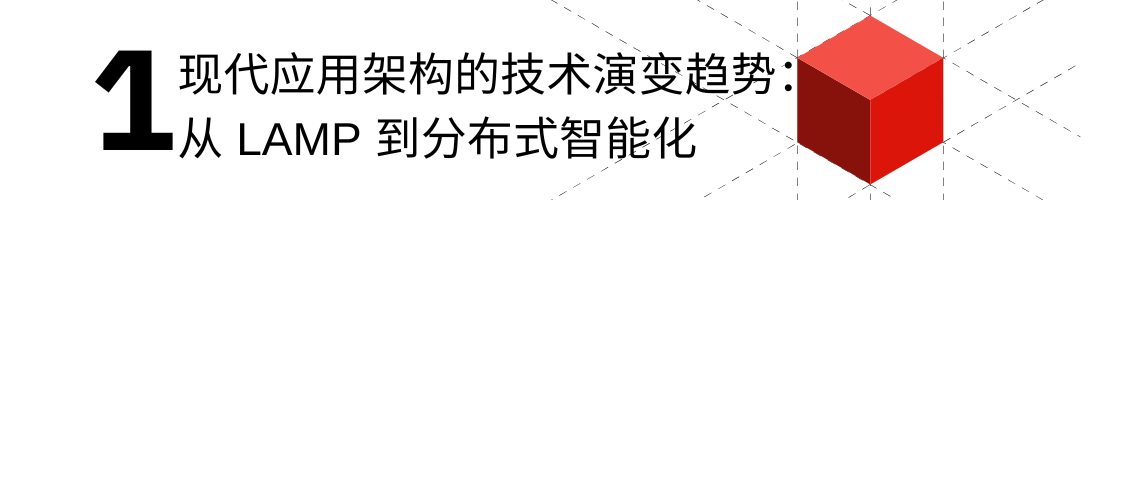 现代应用架构在业务需求与技术进步双轮驱动下,依托于开源技术,经历了高速的发展,成熟度也在不断提升。回顾往昔,Linux、Apache、MySQL 以及 PHP 的简单组合(LAMP)曾是搭建应用网站的主流框架。而随着互联网、移动互联网用户规模的几何级膨胀、业务场景的复杂化,以及企业对系统性能、扩展性、稳定性要求的不断提高,传统的 LAMP 架构逐渐暴露出诸多瓶颈。为突破这些限制,无论是应用还是数据库都向着分布式的大方向演进。整体来看,现代应用技术整体向分布式化、技术精细化、功能模块化、智能化、可视化、需求多样化等方向演进。