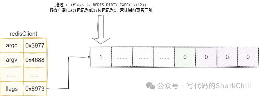 ,当他发现自己的标识即flags字段被客户端1标记为REDIS_DIRTY_CAS