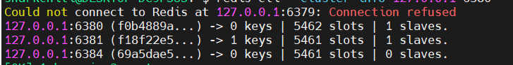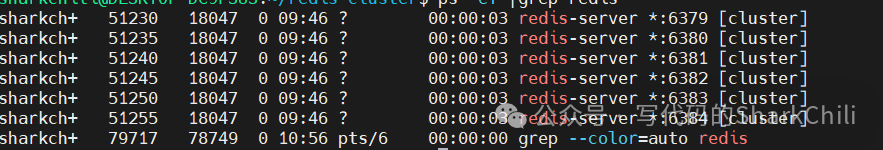 同理基于上述配置创建6380、6381、6382、6383、6384几个节点的conf文件,这里就不多做赘述,然后键入如下指令将节点启动: