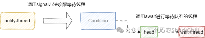 很明显生产者和消费者本质上就是基于这两个标识分别标志自己的等待时机和通知时机,以生产者为例,即每生产一个资源后就可以调用notEmpty
