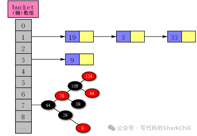 ,转红黑树之后就借用红黑树天然有序性(黑平衡)解决哈希冲突。
