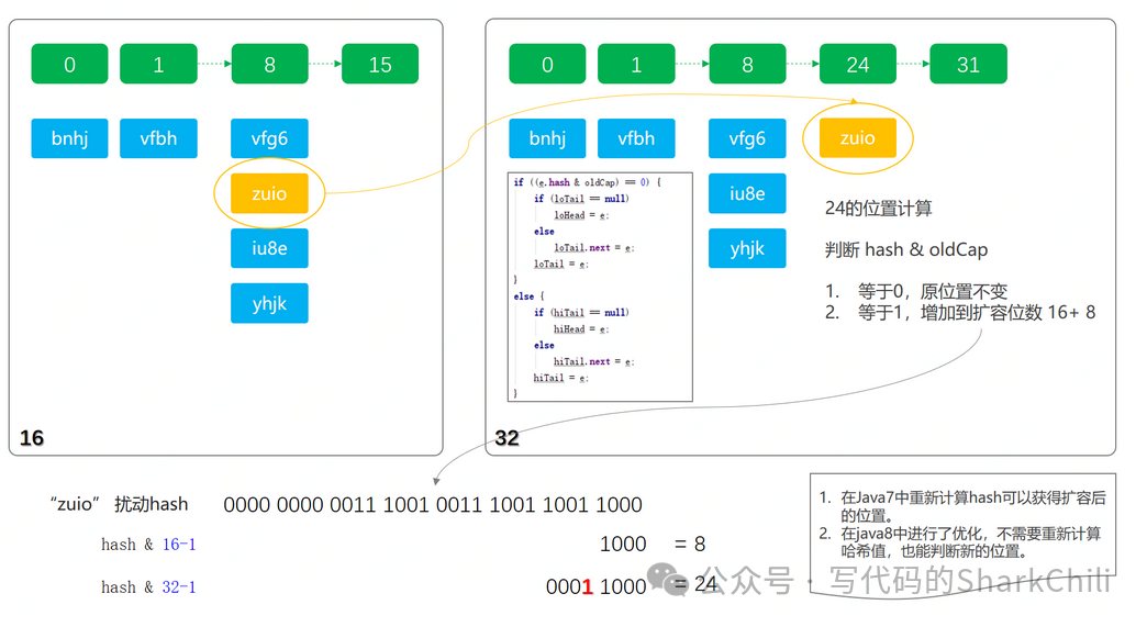 HashMap扩容大小为什么是2的幂:https://www.jianshu.com/p/5ddf1b664641