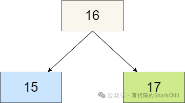 如下图所示,这就是典型的2-3树的2节点,可以看到2节点即父节点存放一个元素的节点,这种节点只能挂两个元素。