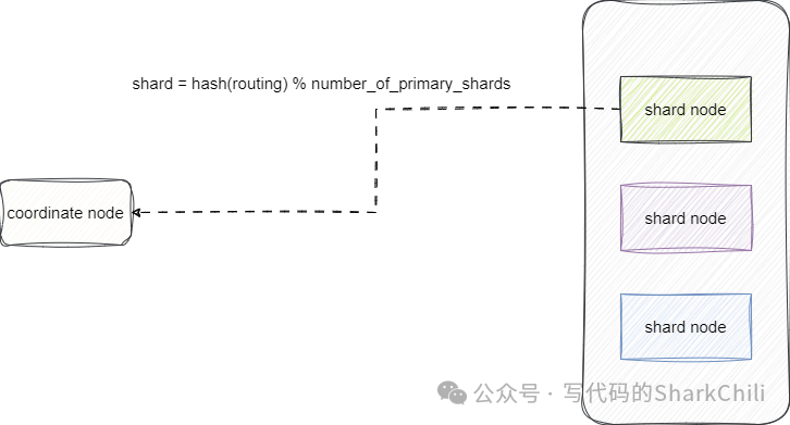 分布式场景下,es会通过如下算法完成文档的检索,需要通过的是下面的routing可以是es自生成的文档id也可以是用户自定义值: