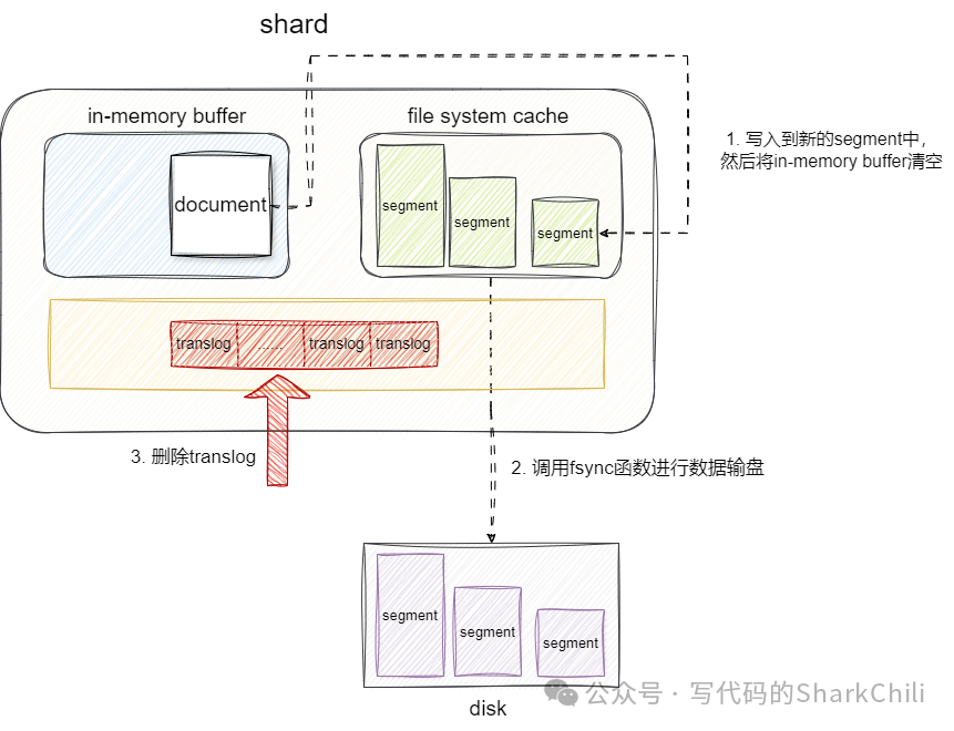 将数据写入磁盘。系统内核按照刷盘策略将数据写入磁盘。 完成上述操作后将 translog