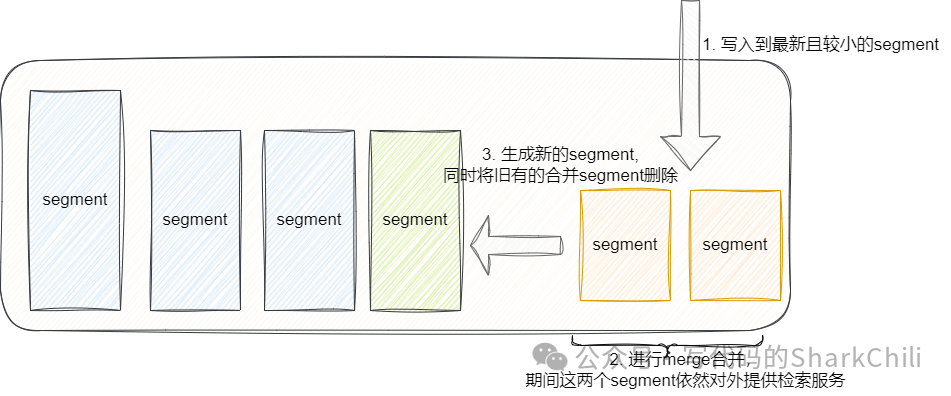 进行合并,在此期间它们依然对外提供服务。完成合并,新的 segment