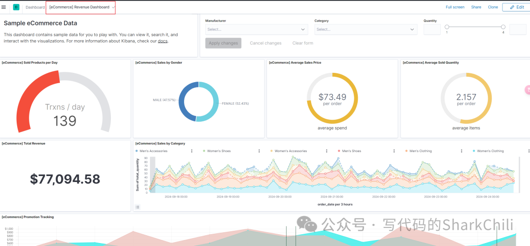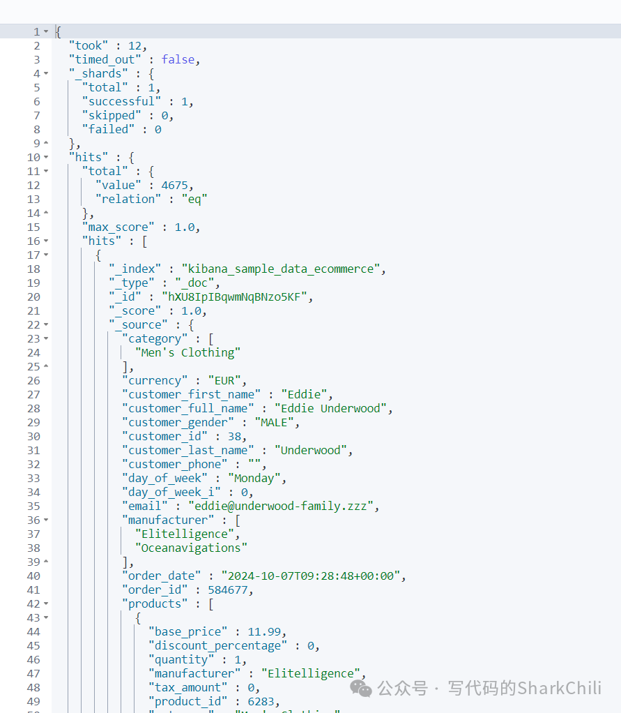 对应指令如下,可以看到我们指定导入数据的index为kibana_sample_data_ecommerce
