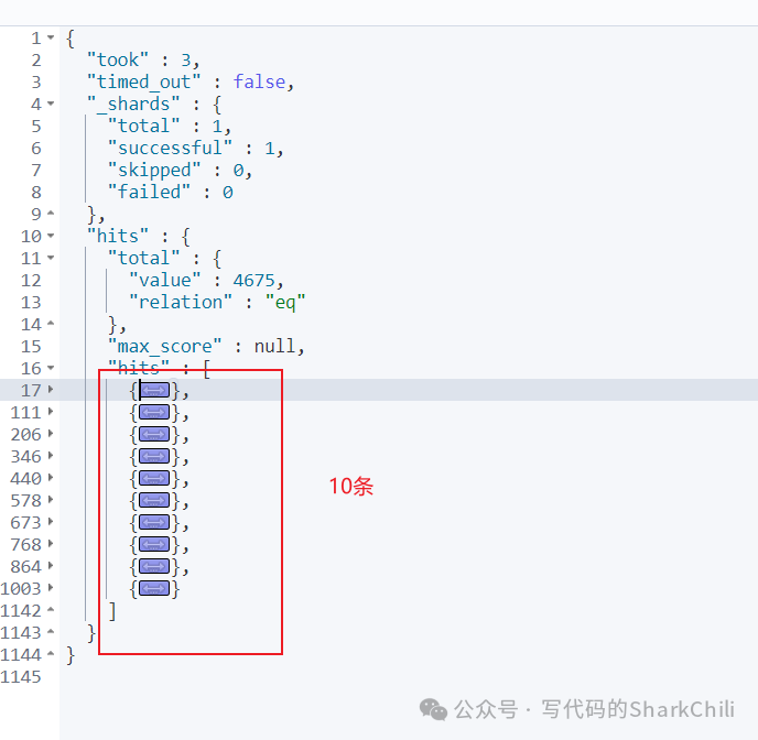 :查询的分片数,并列出成功、失败、跳过的条目数。max_score